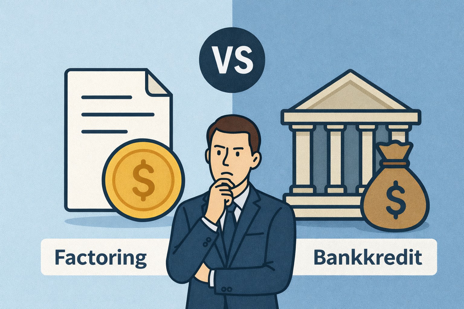 Factoring oder Kontokorrent: Wann Factoring mit 90–100 % Sofortauszahlung im Vergleich zum Bank- oder Kontokorrentkredit strategisch überlegen ist.